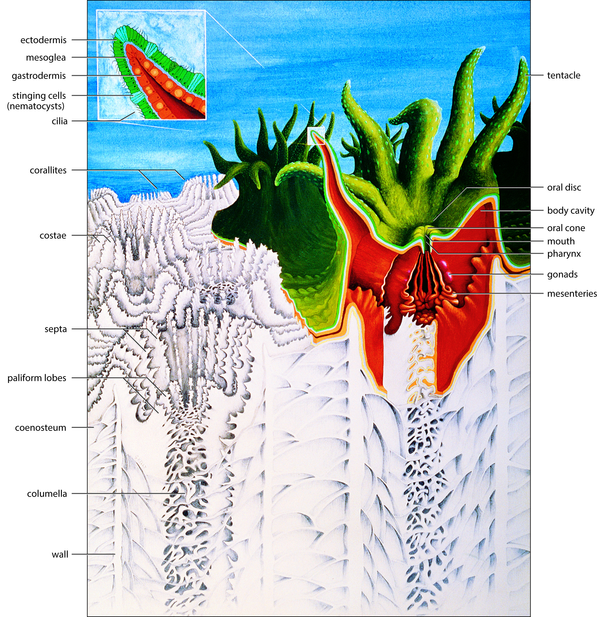 Inside the body of the polyp are digestive and reproductive tissues.